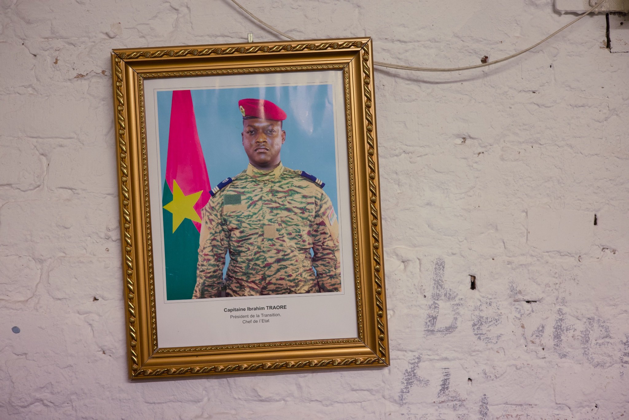 There’s also a framed picture of Capitaine Ibrahim Traoré, the president of Burkina Faso, where his military junta dissolved all the political parties in January.