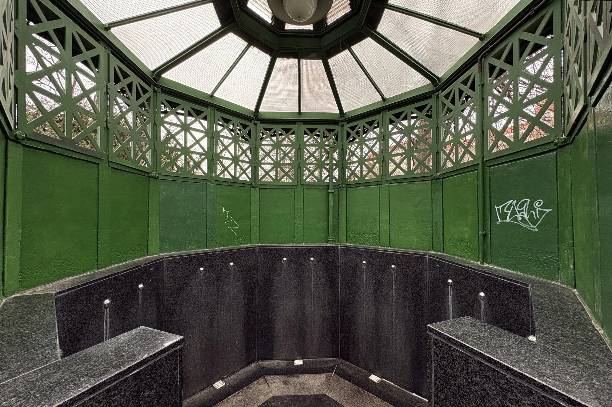 There were also 49 two-stall pissoirs, three ten-stall, and one each of six-stall, eight-stall and eleven-stall variants at the time, the report said. The ten and eleven-stall pissoirs were built of cast iron plates, similar in style to Café Achteck, but in a rectangular form.