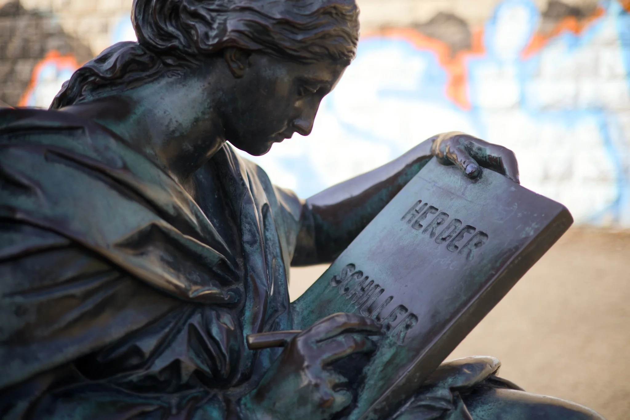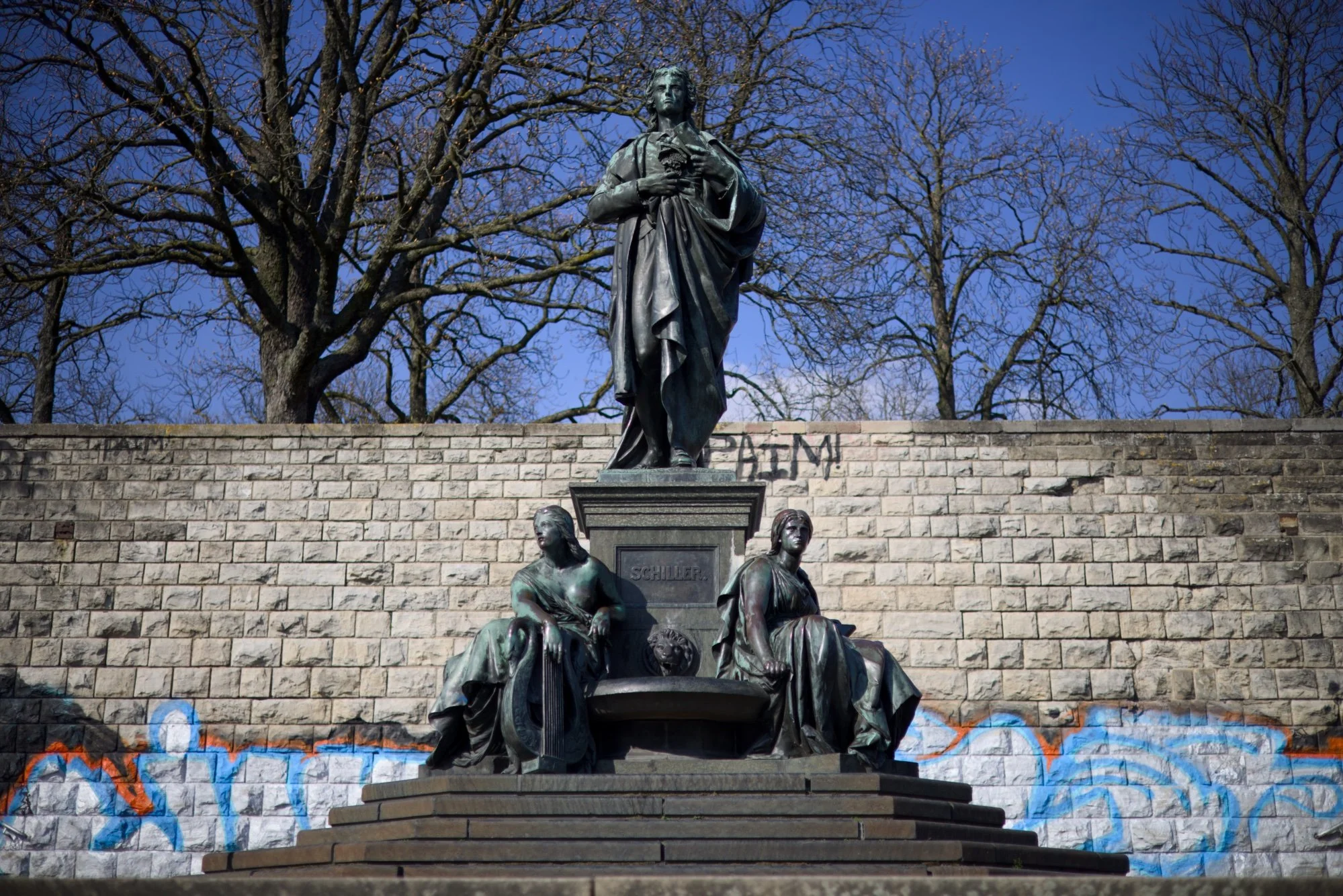 Climbing the stairs, one stands before the Schiller monument, which was erected by the Nazis in 1941 as a copy of an 1869 monument by Reinhold Begas. The bronze was obtained by melting down the monument of the Jewish politician Rathenau. My Nazi-influenced primary school teacher, Mr. Fröhlich – a native of Wedding who loved telling war stories – still knew how to report proudly on its installation.
