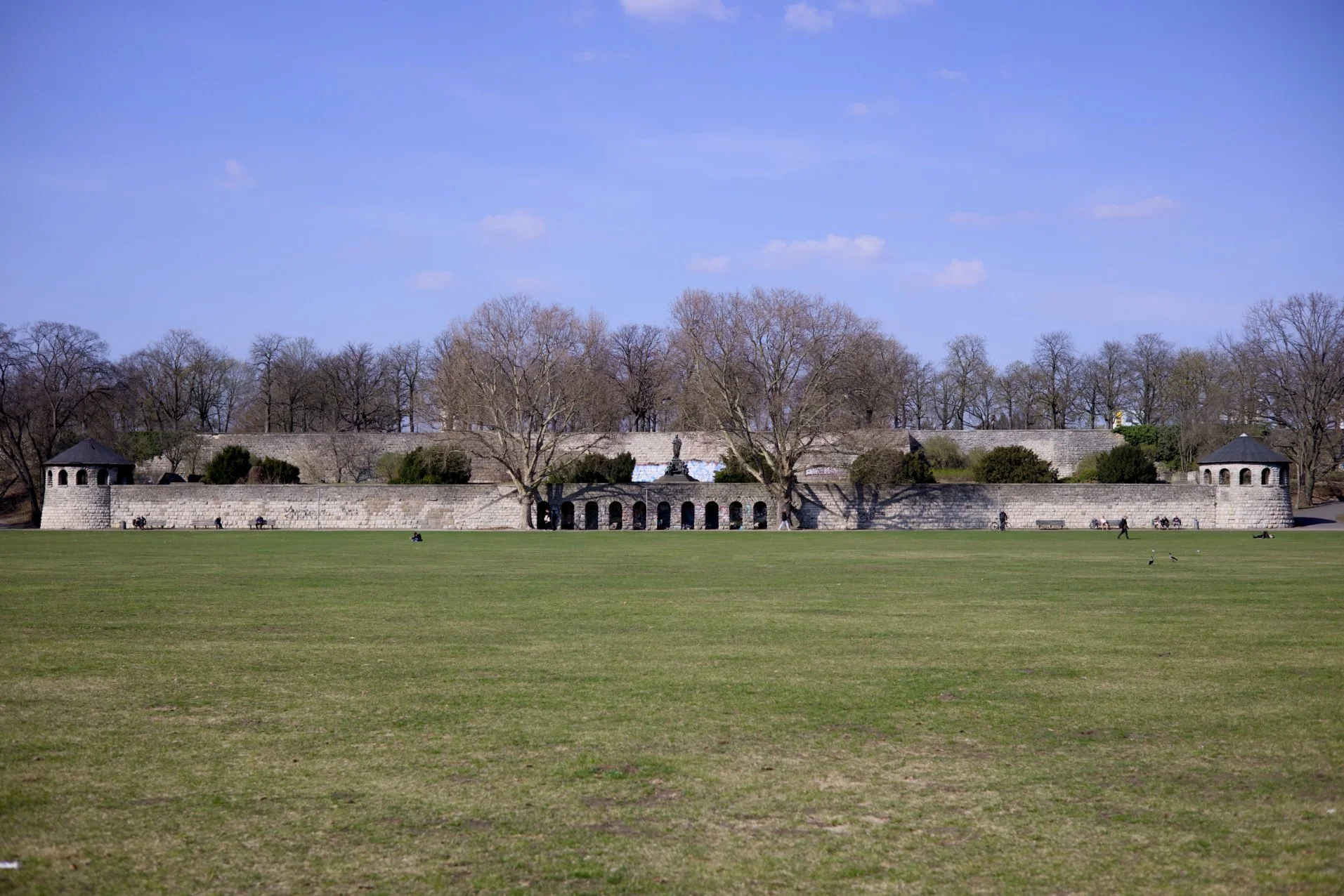 The park was not designed for strolling, but explicitly for the physical exercise of German boys, which is why changing rooms were integrated under the archways of the front wall.
